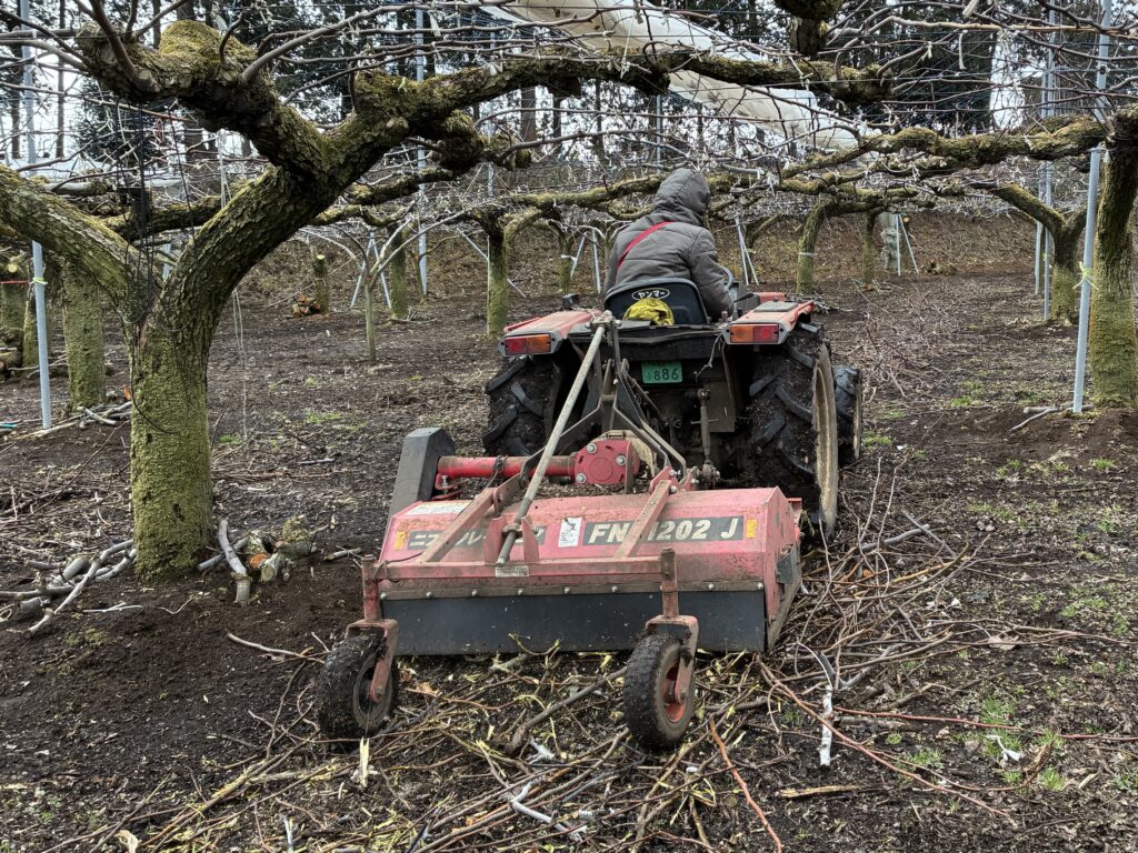 こんばんは! ふじです🐷 3月になり、剪定、誘引の作業はもうすぐ最後の畑に入ります! 今日は、剪定枝の片付けの様子をお見せします! まず、細い枝は熊手で真っ直ぐに集めます。 その後、集めた枝をト […]